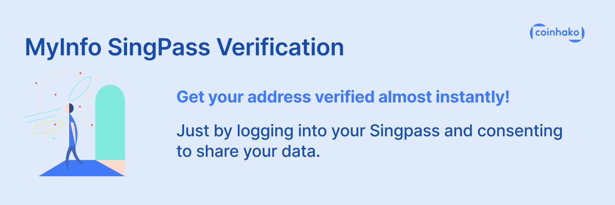 MyInfo is a Government service for Singaporean Citizens or Singaporean Permanent Residents (PR) to manage the use of their personal data for online transactions. With this, all Coinhako users now have the option to complete their address verification simply by logging into MyInfo WITH THEIR SINGPASS, and consenting to share the data with us.